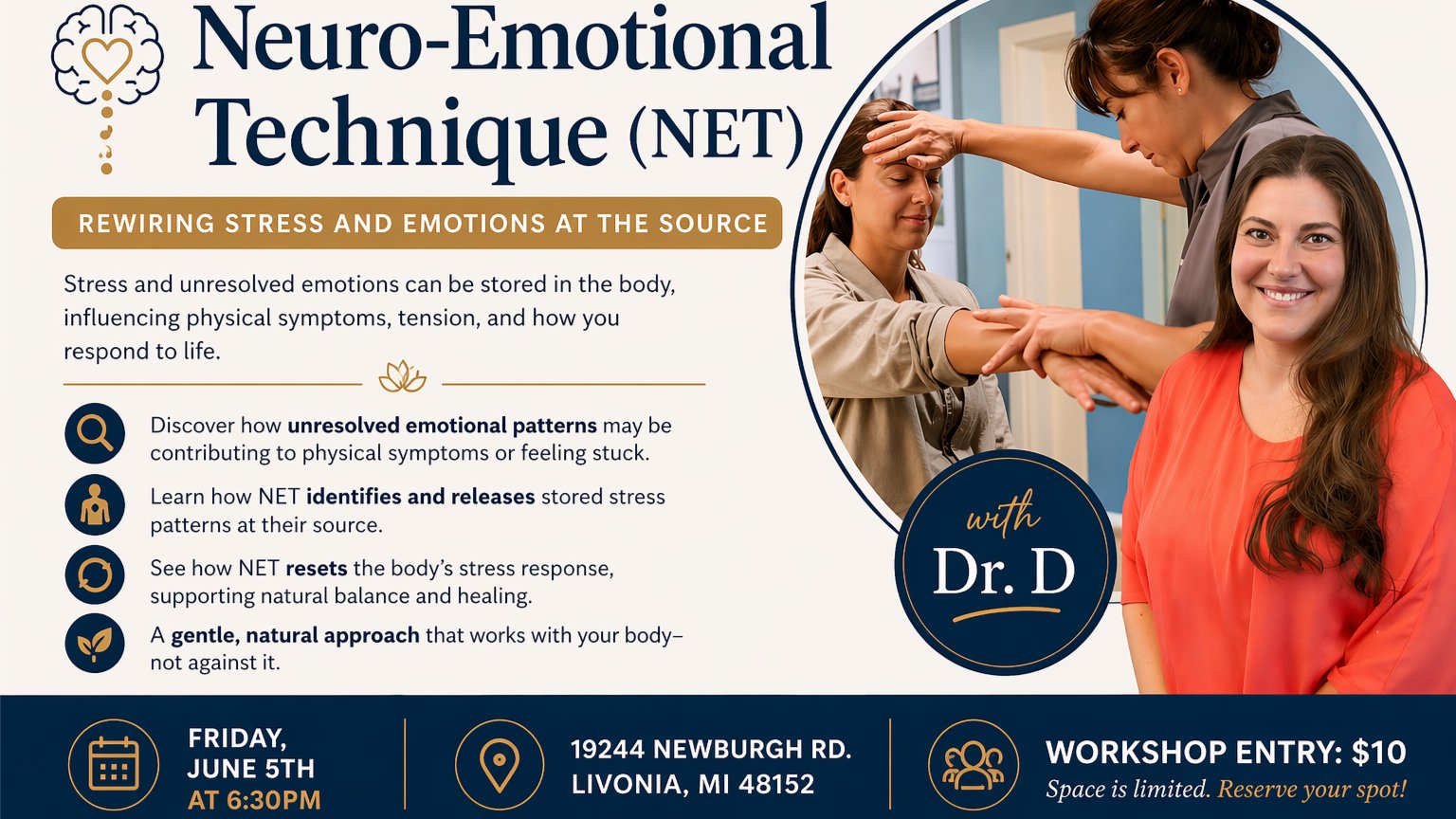 Presented by: Danielle Potter, D.C. Stress isn't just in your mind, it can be stored in your body affecting how you feel and function every day. Join Dr. D for this FREE workshop where we'll introduce Neuro-Emotional Technique (NET), a gentle, natural approach that helps identify and release these hidden stress patterns. Learn how unresolved […]